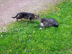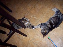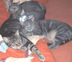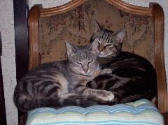 Unsere Tigger spielen und raufen miteinander, aber sie können auch ganz wunderbar zusammen schmusen. Vorreiter auf diesem Gebiet sind eindeutig Foxi und Sugar, die beiden sind das reinste Dream-Team, ein Herz und eine Seele.