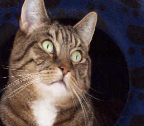 Er wurde im April 1999 in Carolinensiel zusammen mit 5 Geschwistern von einer schwarzen Perserkatze geboren und ist somit der Älteste seiner bei uns lebenden Artgenossen. Dass er ein Halbperser ist, merkt man diesem Kater nicht an.
