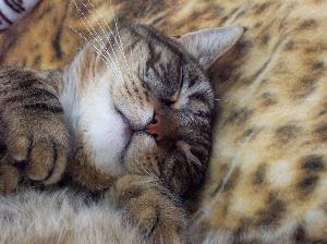Gipsy kommt im Großen und Ganzen recht gut mit den anderen Katzen klar. Aber er ist auch derjenige, der am meisten auf meinen Partner und vor allem auf mich fixiert ist. So kann es mitunter vorkommen, dass man weit und breit keine unserer anderen Katzen sieht, aber Gipsy weicht keinen Schritt von unserer Seite. Er schläft auch bei mir im Bett: Und zwar im Arm und bis zum Hals zugedeckt. Gipsy besitzt als einziger einen eigenen Napf. Bekommt er seiner Meinung nach zu wenig Aufmerksamkeit, fängt er an ganz jämmerlich und kläglich zu jammern, und das kann stundenlang andauern und somit schon manchmal ziemlich nervtötend sein, vor allem wenn sich dieses Ritual allabendlich wiederholt.