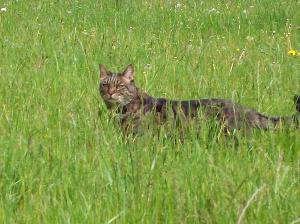 Er ist mein ganz besonderer Kuscheltiger, aber er kann es auch nicht leiden, wenn ich zur falschen Zeit andere Katzen streichel, dann müssen die hier und da auch mal mit einem Tatzenhieb rechnen, ohne zu wissen, was sie eigentlich "verbrochen" haben.